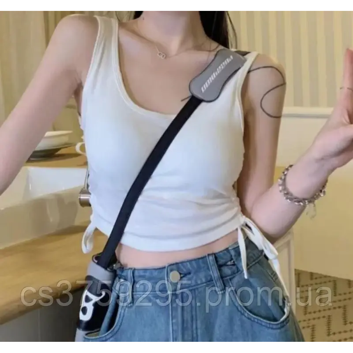 Майка з топом в середині на широких брителях з бавовни