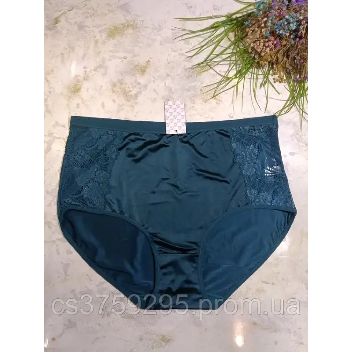 Трусики високі з мереживом з атлас стрейч