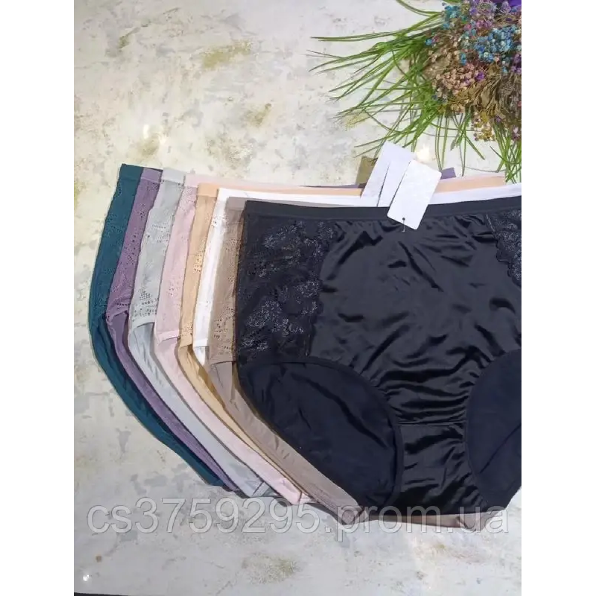 • Трусики високі  з мереживом з атлас стрейч