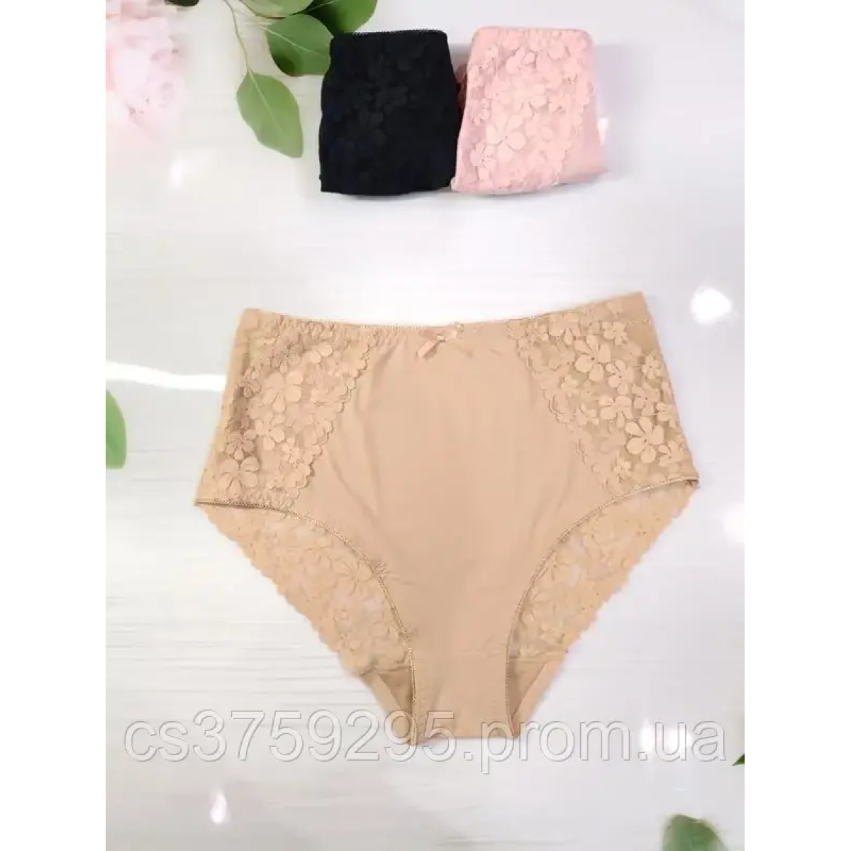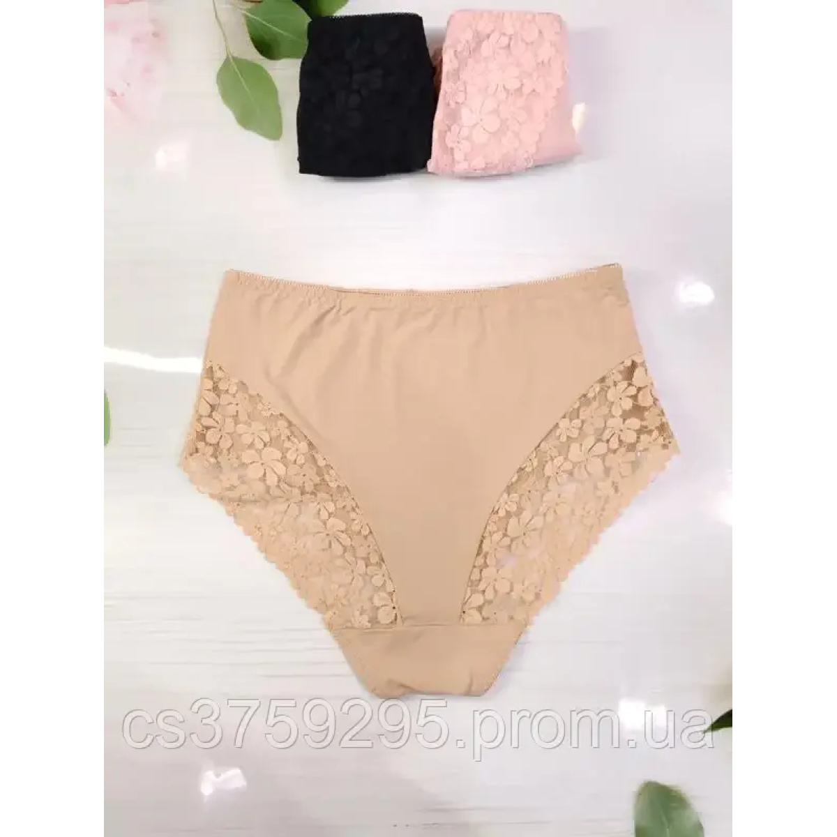 Трусики високі з мікрофібри з мереживом