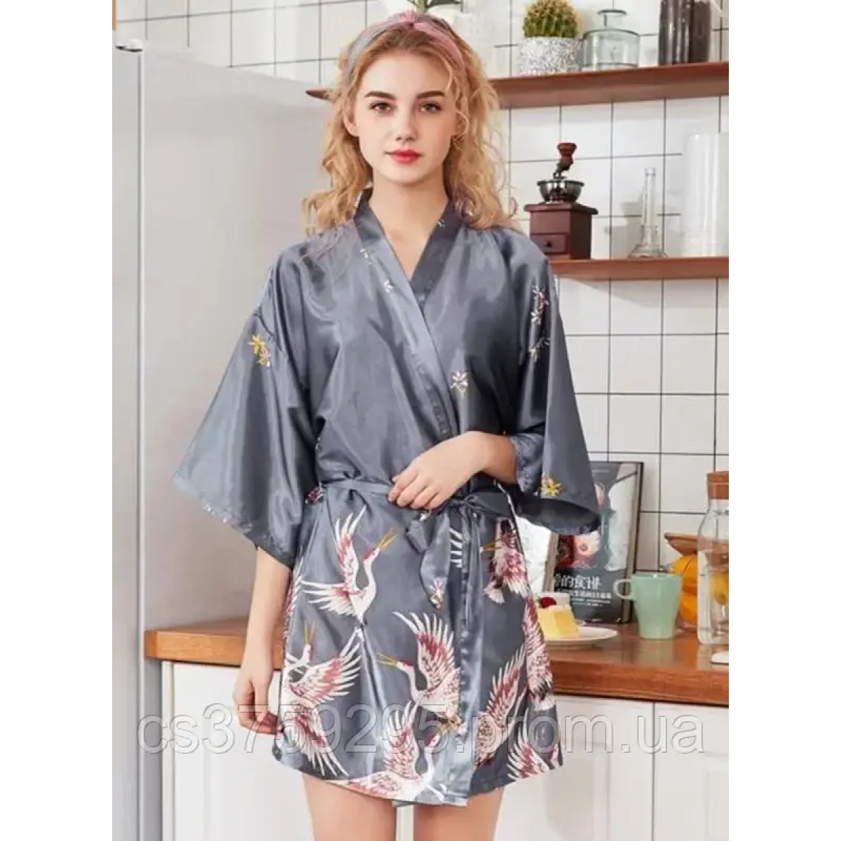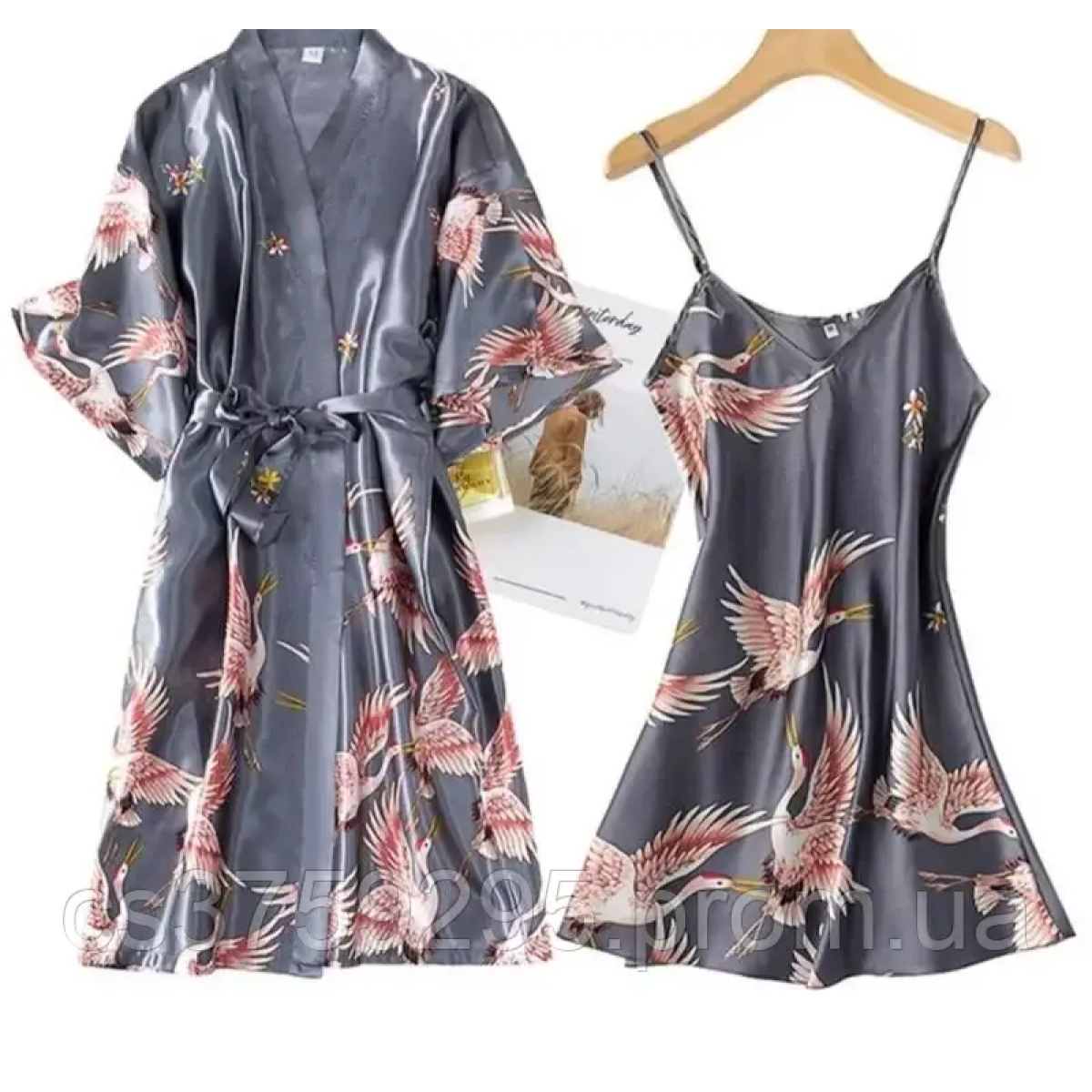 Комплект халат та пеньюар атласний