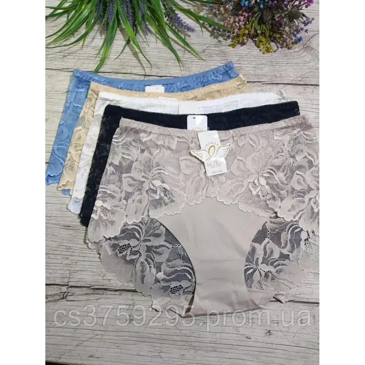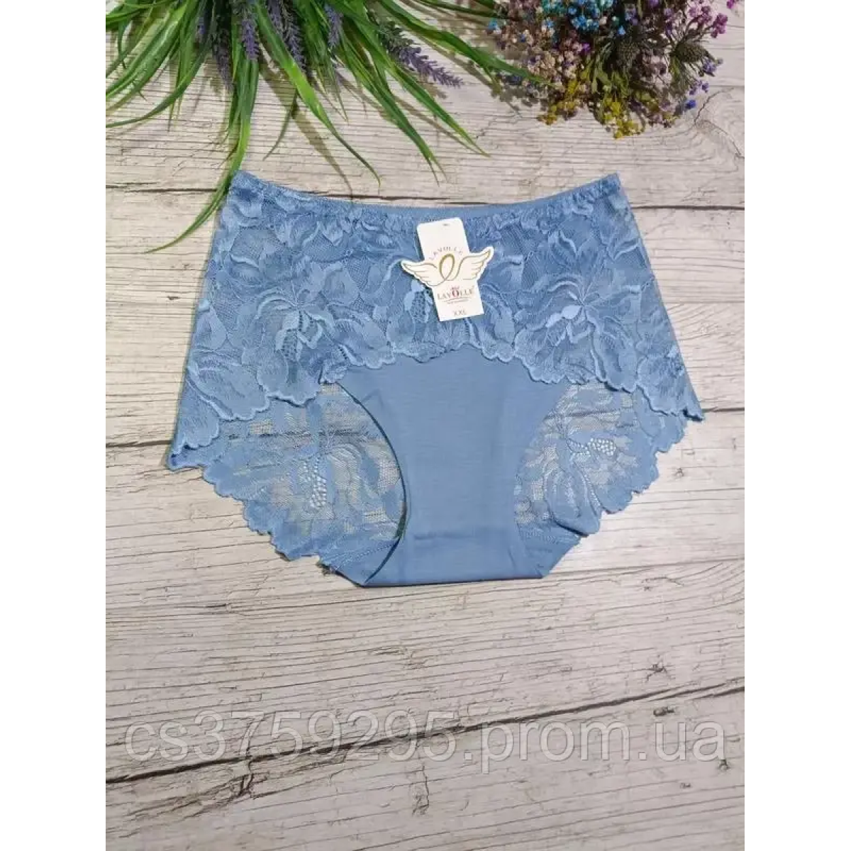 Трусики високі з бавовни з мереживом